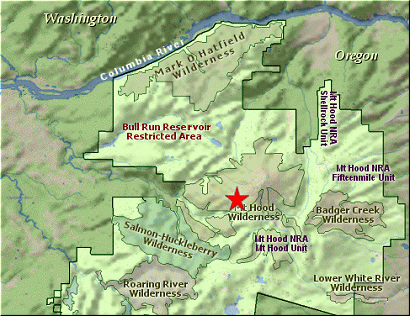 west through the Mt Hood Ski Area. After about a half mile, you will be out